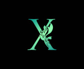 List do Zielonych Liści X Okrągły projekt logo. Logo monogramu. Prosty wir zielony liści ikony alfabetu.