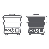 Linia sokowa i solidna ikona, Koncepcja urządzeń kuchennych, Znak mikser na białym tle, ikona wyciskacz w stylu zarysu dla mobilnej koncepcji i projektowania stron internetowych. Grafika wektorowa.