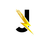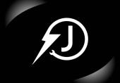 Logo literowe Flash J. Kreatywna ikona stworzona z negatywnej przestrzeni początkowej J w połączeniu z projektowaniem kształtu grzmotu.