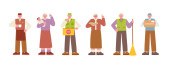 Tłum starszych, aktywnych ludzi idzie zamaskowany. Dorośli mężczyźni i kobiety wykonują ćwiczenia statyczne chodzenie. Maska ochronna na twarzy. Ćwiczenia fizyczne, trening, trening, sport, zdrowy styl życia.