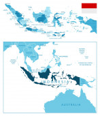 Mapa Indonezja z obramowaniem w kolorze niebieskim
