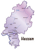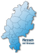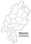 Mapa kraju związkowego Hesja z obramowaniem w kolorze niebieskim