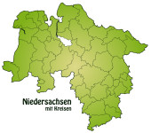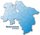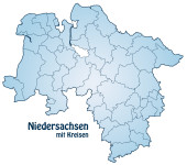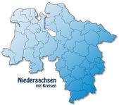 Mapa dolnej Saksonii z obramowaniem w kolorze niebieskim