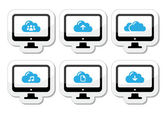 Sieć chmura na laptopa, tablet, smartfon zestaw ikon