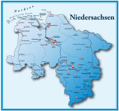 Mapa dolnej Saksonii z obramowaniem w kolorze niebieskim