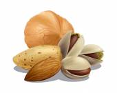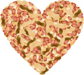 płaskie lay żywności ilustracja mieszanki orzechy migdałowe, orzechy nerkowca, orzeszki ziemne, pistacje, makadamia w kształcie serca