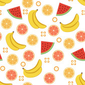 Płynna faktura. Dekoracyjny projekt tła z bananem i arbuzem owoców letnich. Kolorowy wzór wektorowy dla tekstyliów, artykułów piśmiennych, tapet, papieru pakowego, stron internetowych, albumu
