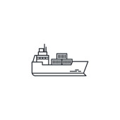 Zdjęcie "ikona wektora statku. możliwy do edycji udar statku. symbol liniowy statku do stosowania w aplikacjach internetowych i mobilnych, logo, mediach drukowanych. Cienka ilustracja. Rysunek zarysu izolowanego wektora." może być wykorzystywane do celów osobistych i komercyjnych zgodnie z warunkami zakupionej licencji Royalty-free. Obraz jest dostępny do pobrania w jakości wysokiej rozdzielczości do 5760x3840.