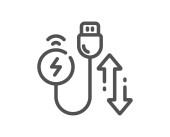 Zdjęcie "ikona wektora ładowarki. ładowarka edytowalny udar. symbol liniowy ładowarki do stosowania w aplikacjach internetowych i mobilnych, logo, mediach drukowanych. Cienka ilustracja. Rysunek zarysu izolowanego wektora." może być wykorzystywane do celów osobistych i komercyjnych zgodnie z warunkami zakupionej licencji Royalty-free. Obraz jest dostępny do pobrania w jakości wysokiej rozdzielczości do 5760x3840.