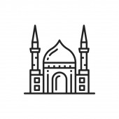 Zdjęcie "ikona wektora meczetu. meczet edytowalny udar. meczet liniowy symbol do stosowania w aplikacjach internetowych i mobilnych, logo, mediach drukowanych. Cienka ilustracja. Rysunek zarysu izolowanego wektora." może być wykorzystywane do celów osobistych i komercyjnych zgodnie z warunkami zakupionej licencji Royalty-free. Obraz jest dostępny do pobrania w jakości wysokiej rozdzielczości do 5760x3840.