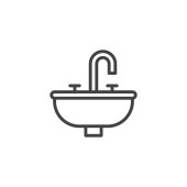 Zdjęcie "ikona wektora zatopienia. zlew edytowalny udar. umywalka liniowy symbol do stosowania w aplikacjach internetowych i mobilnych, logo, nośniki druku. Cienka ilustracja. Rysunek zarysu izolowanego wektora." może być wykorzystywane do celów osobistych i komercyjnych zgodnie z warunkami zakupionej licencji Royalty-free. Obraz jest dostępny do pobrania w jakości wysokiej rozdzielczości do 5760x3840.