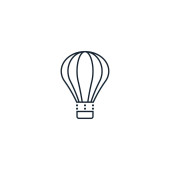 ikona wektora balonu na gorące powietrze. balon z gorącym powietrzem edytowalny udar. symbol liniowy balonu na gorące powietrze do stosowania w aplikacjach internetowych i mobilnych, logo, mediach drukowanych. Cienka ilustracja. Rysunek zarysu izolowanego wektora.