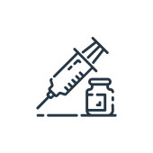 ikona wektora szczepionki. edytowalny udar. symbol liniowy szczepionki do stosowania w aplikacjach internetowych i mobilnych, logo, mediach drukowanych. Cienka ilustracja. Rysunek zarysu izolowanego wektora.