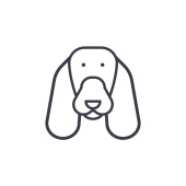 ikona wektora psa. edytowalny udar. symbol liniowy psa do stosowania w aplikacjach internetowych i mobilnych, logo, mediach drukowanych. Cienka ilustracja. Rysunek zarysu izolowanego wektora.