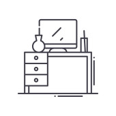 Zdjęcie "ikona wektora miejsca pracy. montażowy udar w miejscu pracy. symbol liniowy miejsca pracy do stosowania w aplikacjach internetowych i mobilnych, logo, mediach drukowanych. Cienka ilustracja. Rysunek zarysu izolowanego wektora." może być wykorzystywane do celów osobistych i komercyjnych zgodnie z warunkami zakupionej licencji Royalty-free. Obraz jest dostępny do pobrania w jakości wysokiej rozdzielczości do 5760x3840.