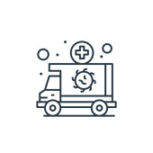 ikona wektora karetki. montażowy udar karetki. symbol liniowy karetki do stosowania w aplikacjach internetowych i mobilnych, logo, mediach drukowanych. Cienka ilustracja. Rysunek zarysu izolowanego wektora.