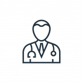 Zdjęcie "ikona wektora lekarza. edytowalny udar. symbol liniowy lekarza do stosowania w aplikacjach internetowych i mobilnych, logo, mediach drukowanych. Cienka ilustracja. Rysunek zarysu izolowanego wektora." może być wykorzystywane do celów osobistych i komercyjnych zgodnie z warunkami zakupionej licencji Royalty-free. Obraz jest dostępny do pobrania w jakości wysokiej rozdzielczości do 5760x3840.
