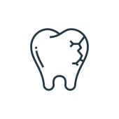 Ikona wektora dentystycznego. stomatologiczny udar. symbol liniowy stomatologiczny stosowany w aplikacjach internetowych i mobilnych, logo, mediach drukowanych. Cienka ilustracja. Rysunek zarysu izolowanego wektora.