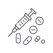Zdjęcie "ikona wektora szczepionki. edytowalny udar. symbol liniowy szczepionki do stosowania w aplikacjach internetowych i mobilnych, logo, mediach drukowanych. Cienka ilustracja. Rysunek zarysu izolowanego wektora." może być wykorzystywane do celów osobistych i komercyjnych zgodnie z warunkami zakupionej licencji Royalty-free. Obraz jest dostępny do pobrania w jakości wysokiej rozdzielczości do 5760x3840.
