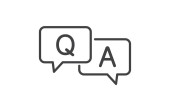 Ikona wektora QA. QA edytowalny udar. Liniowy symbol QA do stosowania w aplikacjach internetowych i mobilnych, logo, mediach drukowanych. Cienka ilustracja. Rysunek zarysu izolowanego wektora.