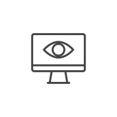 Zdjęcie "monitoruj ikonę wektora. monitorować edytowalny udar. monitorowanie liniowego symbolu do stosowania w aplikacjach internetowych i mobilnych, logo, mediach drukowanych. Cienka ilustracja. Rysunek zarysu izolowanego wektora." może być wykorzystywane do celów osobistych i komercyjnych zgodnie z warunkami zakupionej licencji Royalty-free. Obraz jest dostępny do pobrania w jakości wysokiej rozdzielczości do 5760x3840.