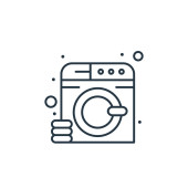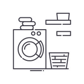 ikona wektora prania. edytowalny udar. symbol liniowy pralni do stosowania w aplikacjach internetowych i mobilnych, logo, mediach drukowanych. Cienka ilustracja. Rysunek zarysu izolowanego wektora.