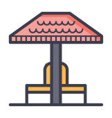 ikona wektora baru na plaży. bar plażowy edytowalny udar. symbol liniowy paska plażowego stosowany w aplikacjach internetowych i mobilnych, logo, mediach drukowanych. Cienka ilustracja. Rysunek zarysu izolowanego wektora.
