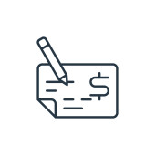 Zdjęcie "Ikona wektora czeku. Czek edytowalny udar. symbol liniowy czeku do stosowania w aplikacjach internetowych i mobilnych, logo, mediach drukowanych. Cienka ilustracja. Rysunek zarysu izolowanego wektora." może być wykorzystywane do celów osobistych i komercyjnych zgodnie z warunkami zakupionej licencji Royalty-free. Obraz jest dostępny do pobrania w jakości wysokiej rozdzielczości do 5760x3840.