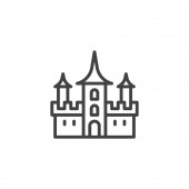 Ikona wektora zamku. zamek edytowalny udar. symbol linearny zamku do stosowania w aplikacjach internetowych i mobilnych, logo, mediach drukowanych. Cienka ilustracja. Rysunek zarysu izolowanego wektora.