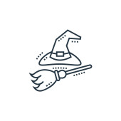 Zdjęcie "Ikona wektora kapelusza czarownicy. Czarownica da się edytować. symbol liniowy kapelusza czarownicy do stosowania w aplikacjach internetowych i mobilnych, logo, mediach drukowanych. Cienka ilustracja. Rysunek zarysu izolowanego wektora." może być wykorzystywane do celów osobistych i komercyjnych zgodnie z warunkami zakupionej licencji Royalty-free. Obraz jest dostępny do pobrania w jakości wysokiej rozdzielczości do 5760x3840.