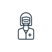 Zdjęcie "ikona wektora pielęgniarki. Pielęgniarka z udarem. symbol liniowy pielęgniarki do stosowania w aplikacjach internetowych i mobilnych, logo, mediach drukowanych. Cienka ilustracja. Rysunek zarysu izolowanego wektora." może być wykorzystywane do celów osobistych i komercyjnych zgodnie z warunkami zakupionej licencji Royalty-free. Obraz jest dostępny do pobrania w jakości wysokiej rozdzielczości do 5760x3840.