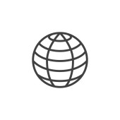 Zdjęcie "ikona wektora globu. globus edytowalny udar. symbol liniowy globu do stosowania w aplikacjach internetowych i mobilnych, logo, mediach drukowanych. Cienka ilustracja. Rysunek zarysu izolowanego wektora." może być wykorzystywane do celów osobistych i komercyjnych zgodnie z warunkami zakupionej licencji Royalty-free. Obraz jest dostępny do pobrania w jakości wysokiej rozdzielczości do 5760x3840.