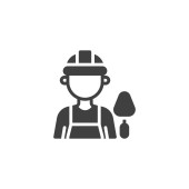 Ikona wektora górniczego. górnik edytowalny udar. symbol liniowy górnika do stosowania w aplikacjach internetowych i mobilnych, logo, mediach drukowanych. Cienka ilustracja. Rysunek zarysu izolowanego wektora.