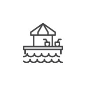ikona wektora plaży. plażowy skok edytowalny. symbol liniowy plaży do stosowania w aplikacjach internetowych i mobilnych, logo, mediach drukowanych. Cienka ilustracja. Rysunek zarysu izolowanego wektora.