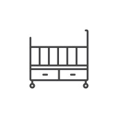 ikona wektora łóżeczka dziecięcego. łóżeczko dziecięce edytowalny udar. symbol liniowy łóżeczka dziecięcego do stosowania w aplikacjach internetowych i mobilnych, logo, mediach drukowanych. Cienka ilustracja. Rysunek zarysu izolowanego wektora.