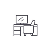 ikona wektora biurowego. edytowalny udar w biurze. symbol liniowy biura do stosowania w aplikacjach internetowych i mobilnych, logo, mediach drukowanych. Cienka ilustracja. Rysunek zarysu izolowanego wektora.