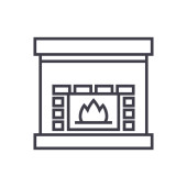 Ikona wektora kominka. Kominek edytowalny suw. symbol liniowy kominka do stosowania w aplikacjach internetowych i mobilnych, logo, mediach drukowanych. Cienka ilustracja. Rysunek zarysu izolowanego wektora.