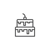 Ikona wektora tortu. Ciasto edytowalne udar. symbol liniowy ciasta do stosowania w aplikacjach internetowych i mobilnych, logo, mediach drukowanych. Cienka ilustracja. Rysunek zarysu izolowanego wektora.