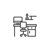 Ikona wektora biurka. można edytować za biurkiem. symbol liniowy biurka do stosowania w aplikacjach internetowych i mobilnych, logo, mediach drukowanych. Cienka ilustracja. Rysunek zarysu izolowanego wektora.