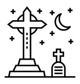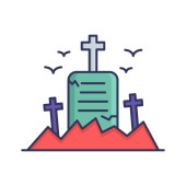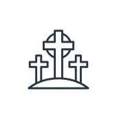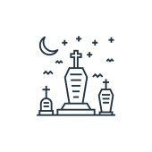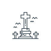 Ikona wektora cmentarza. Cmentarny udar edytowalny. Liniowy symbol cmentarza do stosowania w aplikacjach internetowych i mobilnych, logo, mediach drukowanych. Cienka ilustracja. Rysunek zarysu izolowanego wektora.