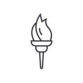 Ikona wektora pochodni. Skok palnika edytowalny. Liniowy symbol palnika do stosowania w aplikacjach internetowych i mobilnych, logo, mediach drukowanych. Cienka ilustracja. Rysunek zarysu izolowanego wektora.