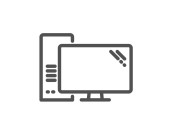 Zdjęcie "ikona wektora komputera. komputerowy suw edytowalny. komputerowy symbol liniowy do stosowania w aplikacjach internetowych i mobilnych, logo, mediach drukowanych. Cienka ilustracja. Rysunek zarysu izolowanego wektora." może być wykorzystywane do celów osobistych i komercyjnych zgodnie z warunkami zakupionej licencji Royalty-free. Obraz jest dostępny do pobrania w jakości wysokiej rozdzielczości do 5760x3840.