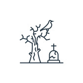 Ikona wektora cmentarza. Cmentarny udar edytowalny. Liniowy symbol cmentarza do stosowania w aplikacjach internetowych i mobilnych, logo, mediach drukowanych. Cienka ilustracja. Rysunek zarysu izolowanego wektora.