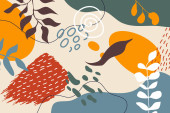 Nowoczesny wektor ilustracji z ręcznie rysowane kształty organiczne, tekstury i elementy graficzne.Modny współczesny design idealny do druku, social media, banery, zaproszenia, projekt marki, okładki
