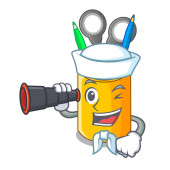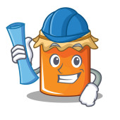 karykatura słoika na miód Architekt z niebieskimi nadrukami