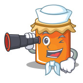 Kreskówkowe zdjęcie słoika miodu Marynarz za pomocą lornetki