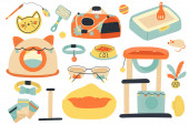 Ilustracja wektorowa zestawu naczynia kuchenne.cuisine tools.isolated na białym tle.for design, web, graphic.cartoon, flat style.collection urządzenia do gotowania, naczynia, accessories.red, niebieski, żółty.