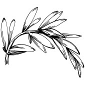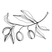 Szkic izolowanych gałązek oliwnych z jagodami. Czarno-biały rysunek symbolu Włoch. Do tła, tekstury, opakowań wzorów, ram lub ram. Sztuka linii wektorowej.