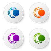 Kolor Kołowrotek spinningowy do ikony wędkarskiej izolowane na białym tle. Cewka rybacka. Łowienie ryb. Ustaw ikony w przyciskach koła. Wektor.