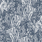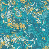 jasny ręcznie rysowane wzór bez szwu, wektor ilustracji. abstrakcyjne tło z liśćmi, jagodami i lokami.
